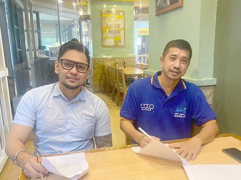 Photo shows John Paul Alvarez and Val Hilario signing the MOA at a simple ceremony held at BGC on July 13, 2022.